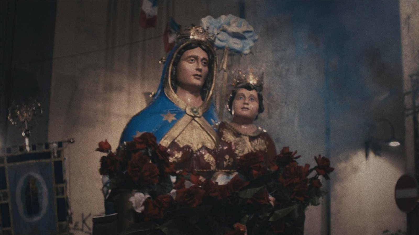 Naples. Une Vierge au bleu sur la joue qui fait des miracles. Autour d’elle évoluent trois personnages féminins qui ne se rencontrent jamais. Giusy, une fille en chaise roulante qui n’a pas eu droit au miracle et est devenue athée, libre d’esprit et anthropologue spécialiste en cultes de Marie. Fabiana, une femme trans à la tête d’un groupe de fidèles de la Vierge dans un quartier populaire du centre-ville. Et Sue, une pianiste coréenne à la recherche d’une nouvelle direction dans sa vie, enseignant la musique aux enfants en difficulté dans une ville très éloignée de sa culture d’origine. Chacune avec ses blessures intimes et sa propre recherche du « miracle ».